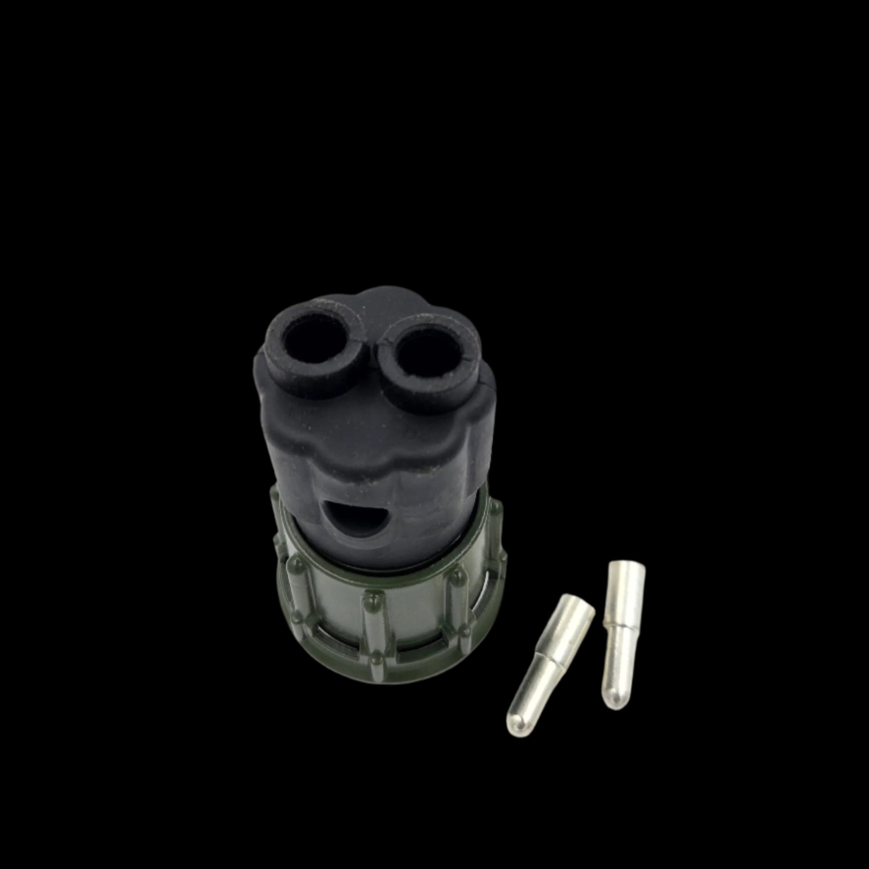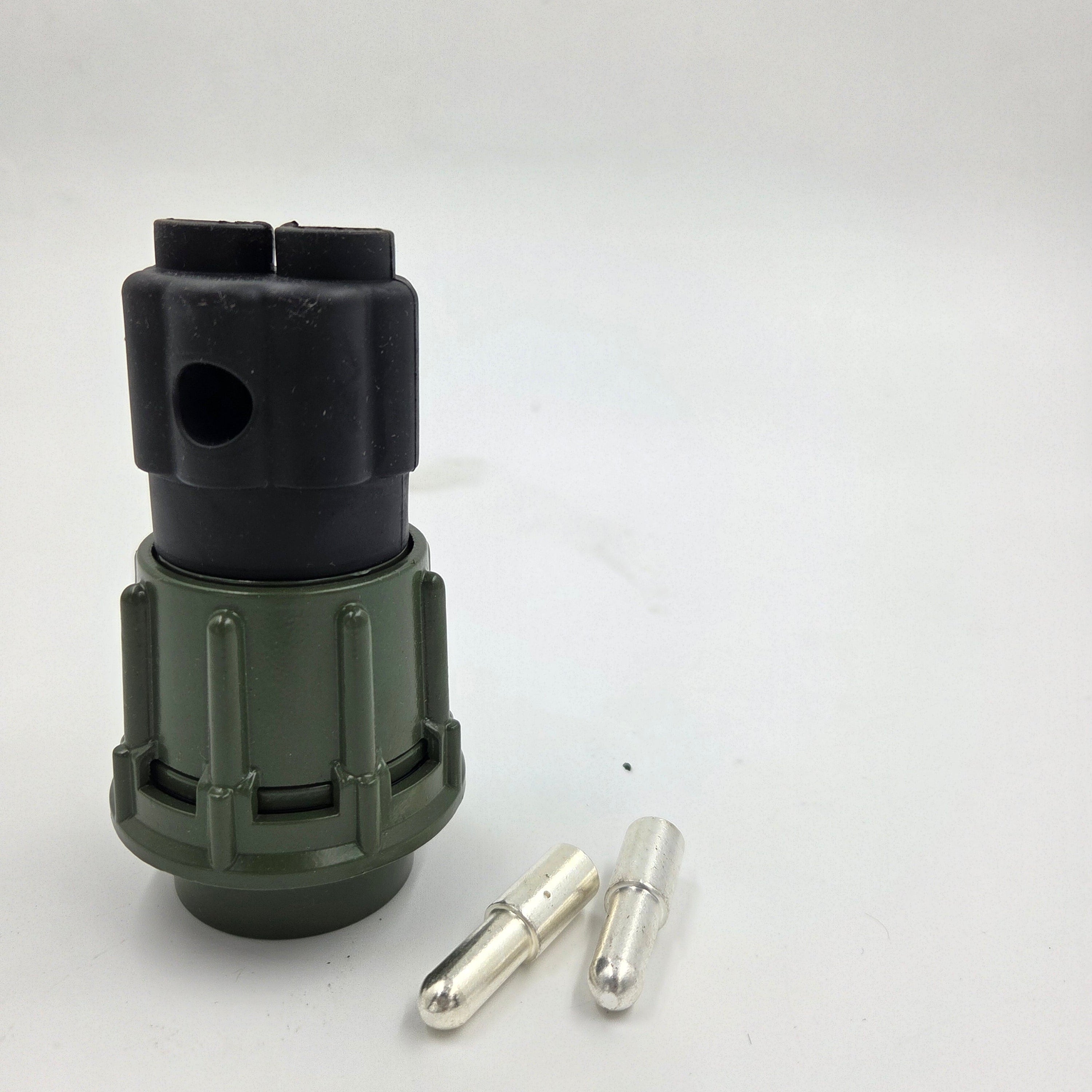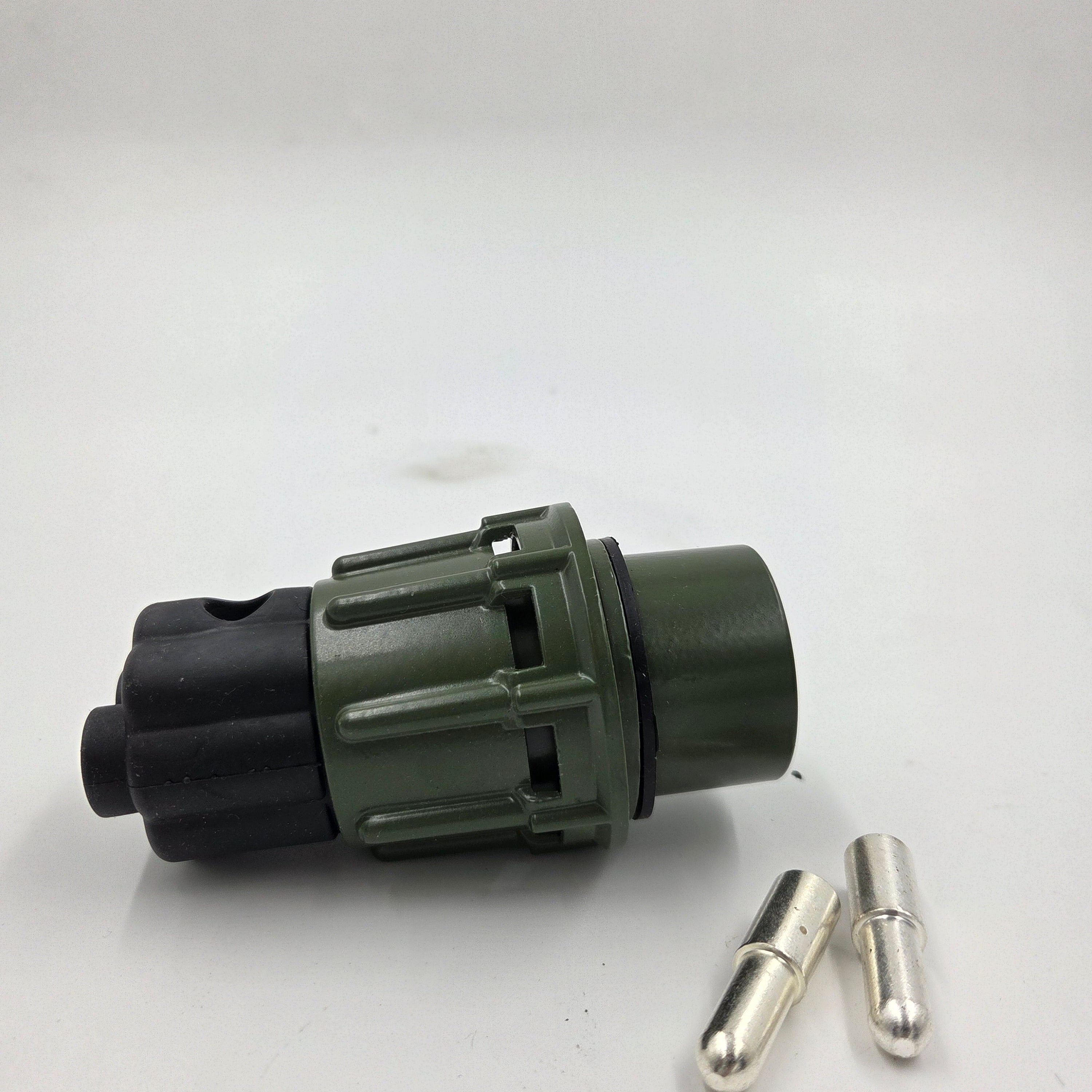 Dieser robuste 2-polige Elektrostecker im NATO-Design ist für 24V-Anwendungen konzipiert. Das solide Gehäuse und die stabile Bauform sorgen für eine zuverlässige Verbindung, wie sie besonders bei Nutzfahrzeugen, Militärfahrzeugen oder im Offroad-Bereich gefragt ist. Die klar erkennbaren Metallkontakte gewährleisten einen sicheren Stromfluss. Der Stecker eignet sich ideal für die Verbindung von elektrischen Komponenten mit NATO-Standardsteckdosen.